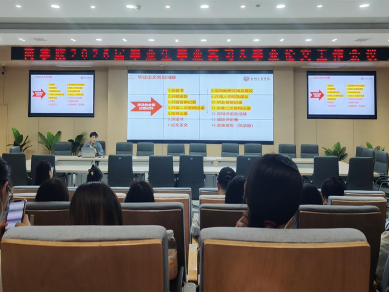 为顺利启用论文管理系统,进一步提升毕业论文及毕业实习工作质量,商学院于9月30日下午组织召开2026届毕业生毕业论文及毕业实习指导工作研讨会,商学院教学副院长袁琪出席会议,会议由商学院实验管理办公室主任李柘男主持,全体指导教师参会。