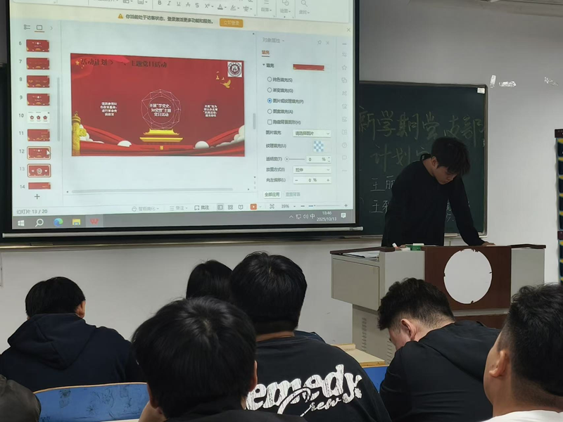 活动伊始,支部书记王丽在会议上向支部成员分享个人入党经历,分享了她从提交入党申请书时的初心、积极分子培养期间的成长,到成为正式党员后践行使命的故事,鼓励支部成员积极参与党支部活动,接着,支部书记王丽在会议上提出针对理论学习,通过每月时事讨论、线上交流与线下党章学习,深化党的理论成果与政策解读;组织建设聚焦完善架构、培养入党积极分子及开展党员先锋岗活动,提升支部凝聚力;活动层面计划开展红色教育基地参观、“我为群众办实事”实践等活动,丰富组织生活。最后,党支部书记王丽为支部成员明确了新学期三大核心任务:理论学习、党日活动的开展,以及党支部建设工作的计划安排,进一步激发支部成员参与支部建设的热情。