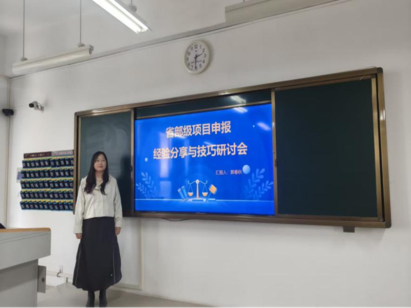 会议中,郭春秋老师以“河南省软科学研究计划项目”为例,从如何选取组建项目团队、如何选取适合自己的课题方向、如何培养自己的科研能力等方面进行分享。随后,现场教师就项目申报中的疑惑点展开积极讨论。最后,教研室主任陈三举强调各位教师需向优秀教师看齐,积极申报省部级项目,认真分析选题热点与总体特征,以问题意识为导向,使课题申报更具创新性与可行性。