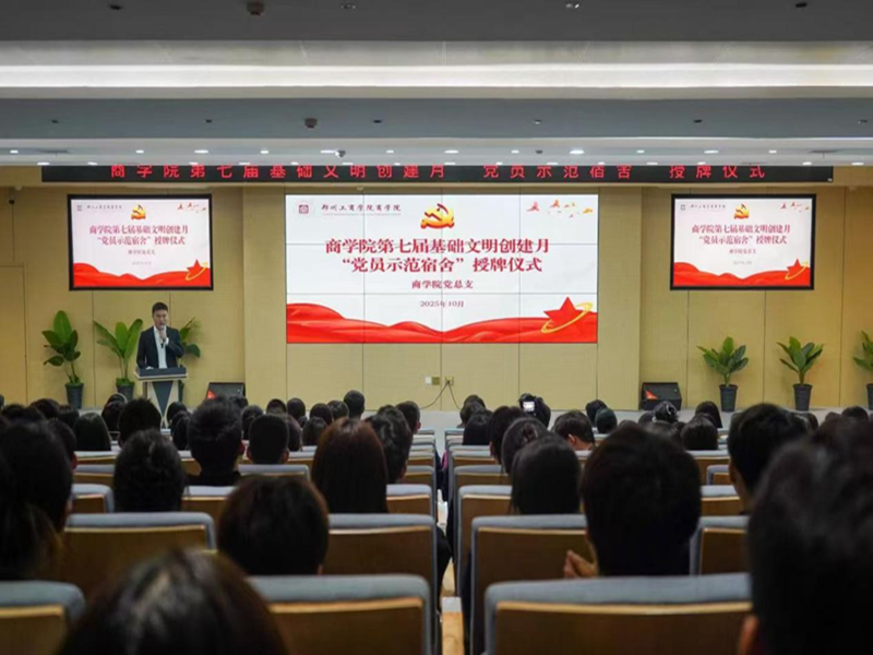 仪式在庄严的中华人民共和国国歌声中拉开序幕。商学院党总支宣传委员、大二年级长翟亚丽宣读《商学院第七届基础文明创建月“党员示范宿舍”创建活动方案》。商学院党总支副书记、团总支书记徐凯宣布获得“党员示范宿舍”的名单。随后,校长助理、商学院院长曹云明为2023级学生党员宿舍授牌,商学院党总支副书记、团总支书记徐凯为2025级专升本学生党员宿舍授牌。授牌结束后,商学院党员代表史可澜发言。她结合自身经历,分享了对“党员示范宿舍”创建意义的理解,呼吁学生党员时刻牢记身份使命,在宿舍文明建设中发挥先锋模范作用。