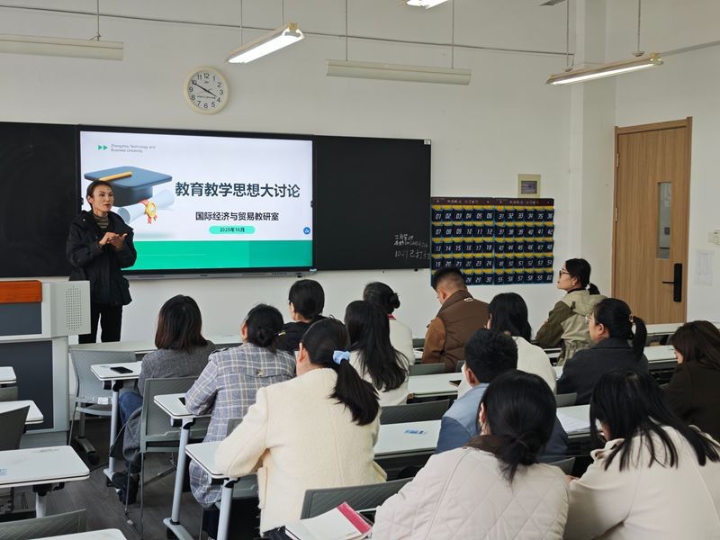 为深入理解国家《教育强国建设规划纲要(2024-2035年)》 和国务院《关于深入实施“人工智能+”行动的意见》,推动教育教学高质量发展,10月28日下午,国际经济与贸易教研室在2号楼425教室召开了“教育教学思想大讨论”专题教研会议。会议由武赛男主任主持,教研室全体教师参与研讨。