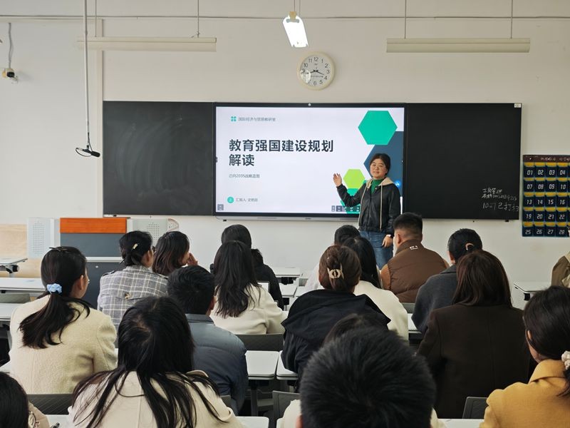 首先,武赛男主任介绍了《教育强国建设规划纲要(2024-2035年)》 和《关于深入实施“人工智能+”行动的意见》两份文件的基本概况,提出在当前全球化和信息化的时代背景下,教育工作者更应该以培养具有国际视野、创新能力和社会责任感的高素质人才为目标,以更高的标准要求自己,以更饱满的热情投入到教育教学工作中。之后,史艳丽老师从规划背景、总体目标、重点任务、实施路径、保障机制、展望呼吁等方面深入解读了《教育强国建设规划纲要(2024-2035年)》。最后,肖潇老师分享了自己在教学中遇到的课堂管理问题及采取的措施。与会教师也针对教学实践中普遍存在的教育教学问题,展开了热烈讨论。
