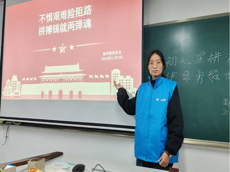 为传承红色基因,厚植家国情怀,让“两弹一星”精神在青年一代中薪火相传,11月3日晚,商团郑青春志愿服务宣讲团在2号楼408和521教室成功举办“观影忆峥嵘 精神励青春”主题观影活动。众多学生和宣讲团成员怀揣崇敬之心参与活动,共同重温那段戈壁铸剑、为国攻坚的峥嵘岁月。